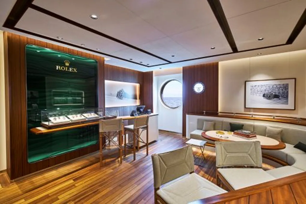 船内ではショッピングやエンターテインメントなど、様々な楽しみも演出。エクスプーラⅠには、高級宝飾として洋上初の正規ロレックス専門店、そしてカルティエ、ピアジェ、パネライの高級ブランドが並んでいます。エクスプローラⅡではロレックスの代わりにイタリアのハンドメイド・ハイジュエリーブランドであるブチェラッティが洋上初出店。これらの高級宝飾店の向かい側には、細部へのこだわりや、海洋環境保護というコンセプトに共鳴する30のブランドをご用意したセレクトショップがあります。夜になると様々なラウンジで、生演奏やショーが幕を開けます。ドリンクを片手にお好みの場所や過ごし方で、上質な時間をお楽しみください。