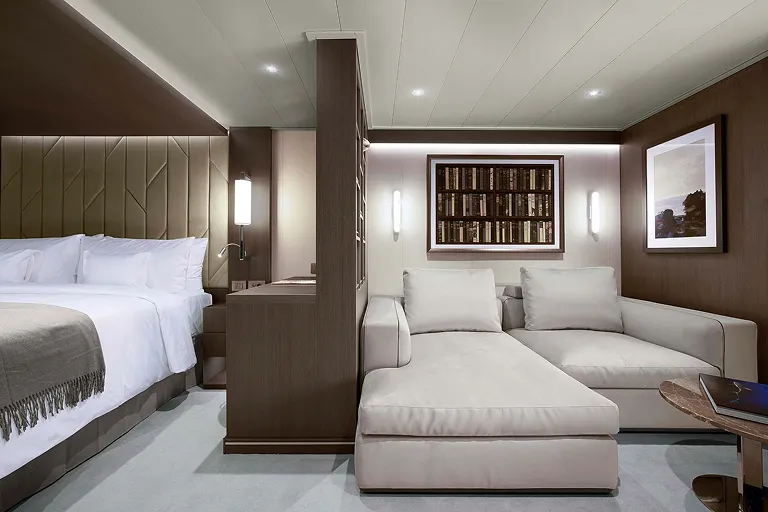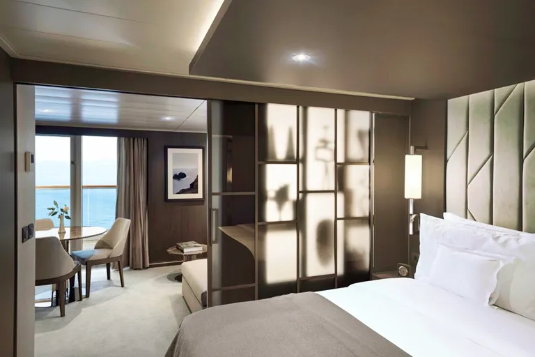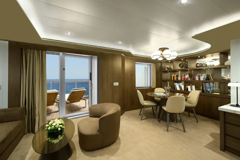 全室オーシャンフロントのプライベートテラス付きのスイートでは、天井まで届く大きな窓、テラスに備わるデイベッドなど、海の存在をより近くに感じることができます。室内は世界有数のスーパーヨットデザイナーや建築家と協働し、綿密に設計されました。標準客室となるオーシャンテラススイートは、35㎡(室内28㎡、テラス7㎡) と、ラグジュアリー船の中でも最大級。さらに43~68㎡のオーシャンペントハウス、70~280㎡のレジデンスを加え、全てのスイートで色合いと質感、くつろぎの雰囲気が、穏やかで心地よい空間を演出します。